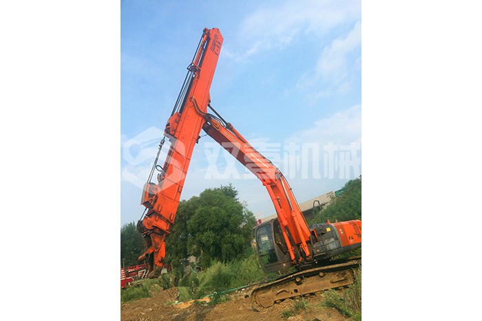 雙壹公司備有多臺長臂挖掘機,15-200米各種長度,一站式解決您的深坑挖掘難題。