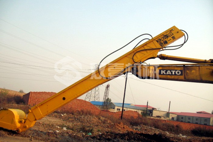 兩節伸縮臂是雙壹機械2005年自主研發的突破性產品,被多家同行模仿制造,從未被超越;臂長度19米,采用高噸位的三機聯動折彎設備折成U型,雙U型對接的焊接方式。