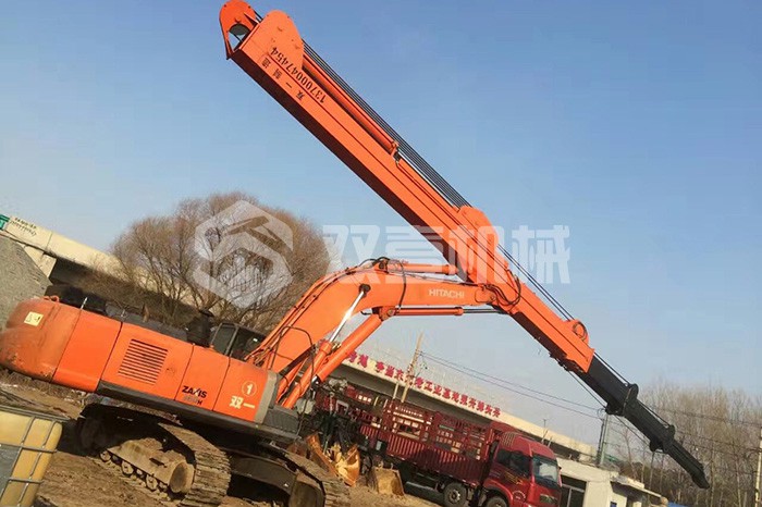 超長四節臂:總長度可達48米,臂內可再伸出3節,施工深度42.5米,配帶貝殼斗1.8立方或挖掘斗1.0立方。