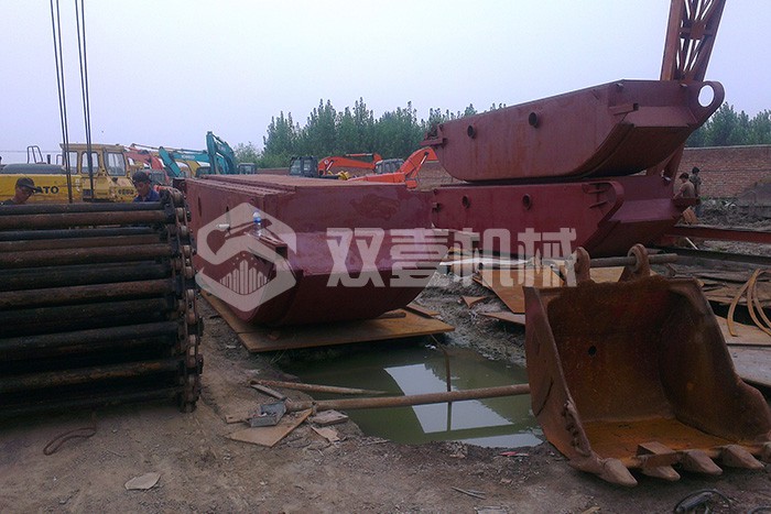 水陸兩用挖掘機浮箱:普通挖掘機安裝浮箱后,可在水面和淤泥中作業,河道清淤、濕地沼澤治理、江、河、湖、海灘的環境整治及魚池的清理。